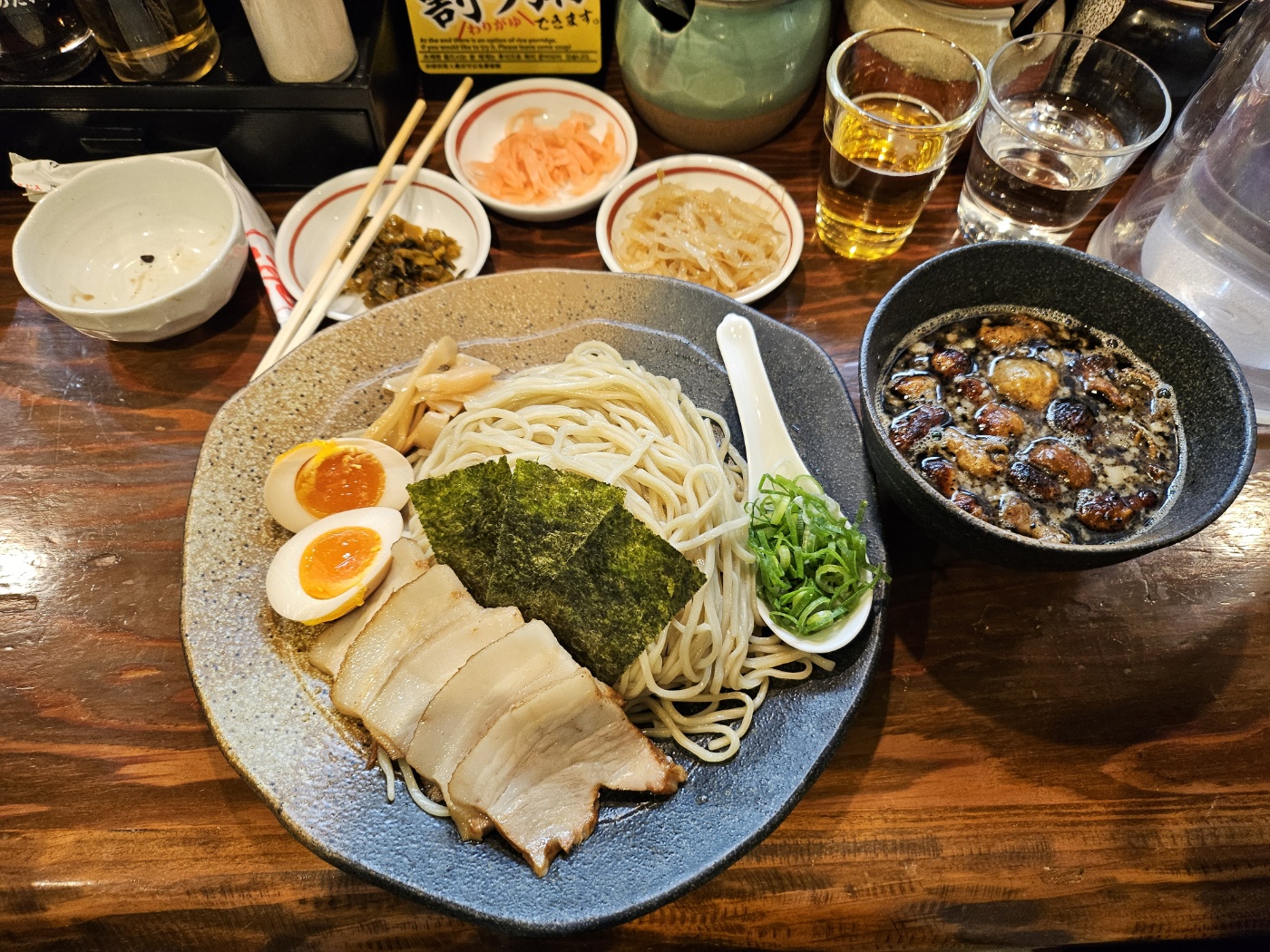 주문 후 약 10분 정도 기다리니 스페셜 모츠 츠케멘이 제공되었다. 츠케멘답게 따로 나온 국물에 면을 찍어 먹는 방식이다.