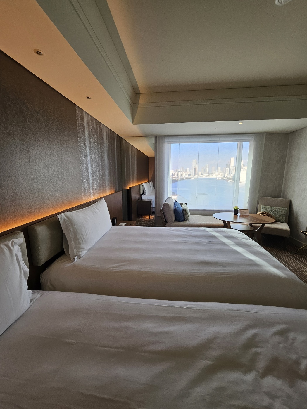객실 문을 열자마자, 도쿄 베이와 레인보우 브리지가 한눈에 들어오는 창문 너머 풍경에 모두가 감탄을 금치 못했다. 우리는 짐을 풀기도 전에 편안한 방 분위기에 침대에 드러누워 한참을 수다를 떨었다.